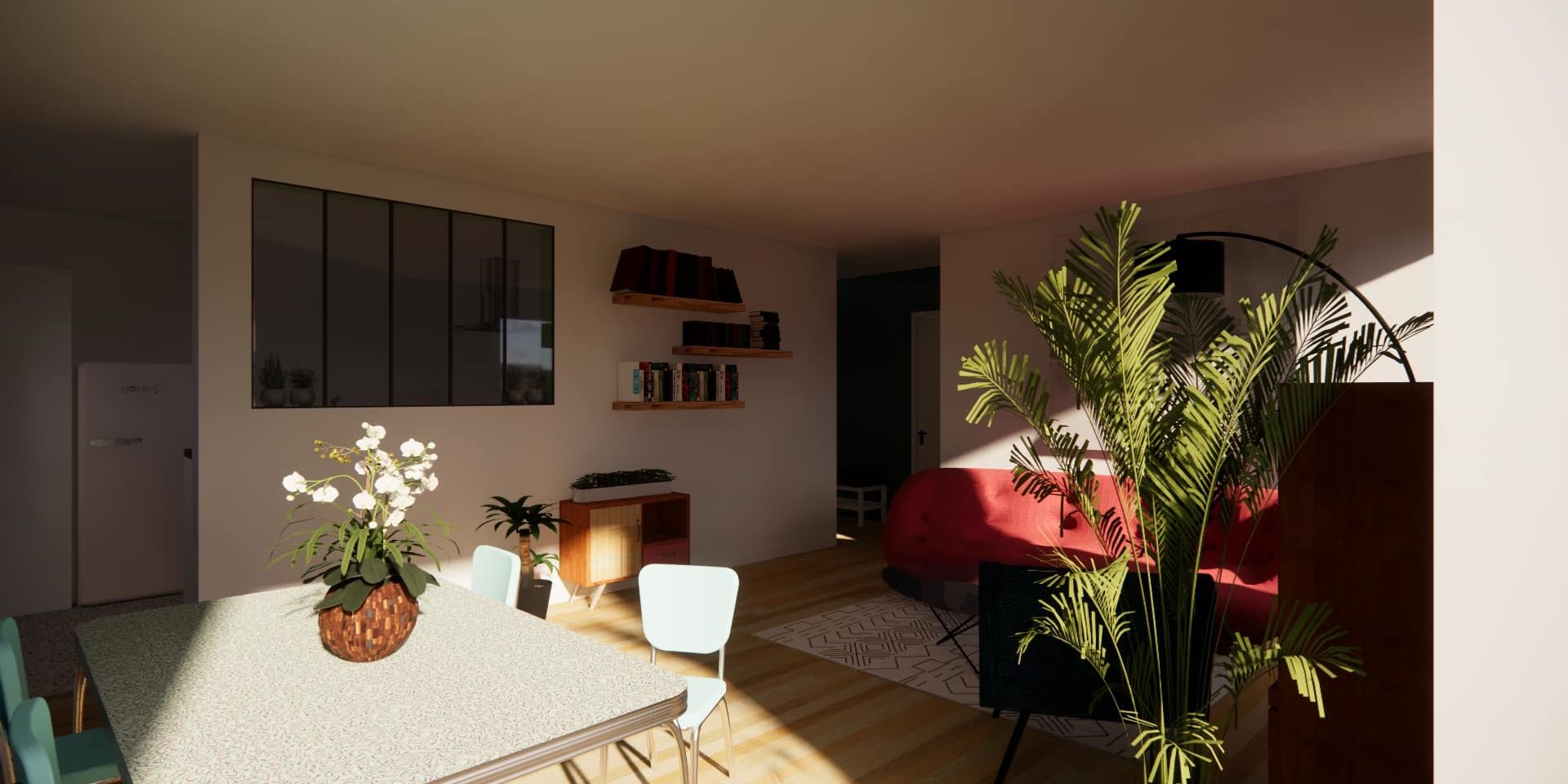 A l’aide d’Enscape, je réalise des visuels pour permettre au client final de se projeter dans le lieu de façon plus réaliste.