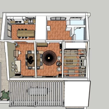 A partir du plan 2D, j’ai modélisé la maquette 3D sous sketchup.